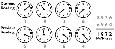 To determine current usage, deduct the previous reading from the current.